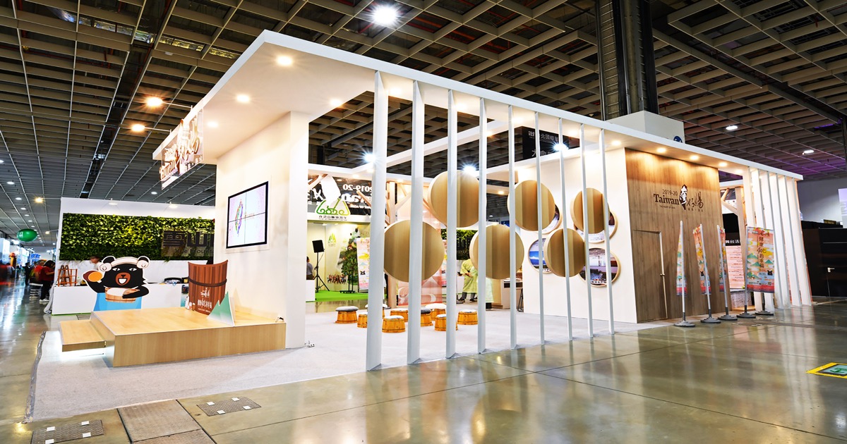 展區使用仿木紋格柵與枝幹造型元素,讓展覽視覺豐富且富有層次,不僅強化自然意象,也提升空間的透視感與拍照可看性。
