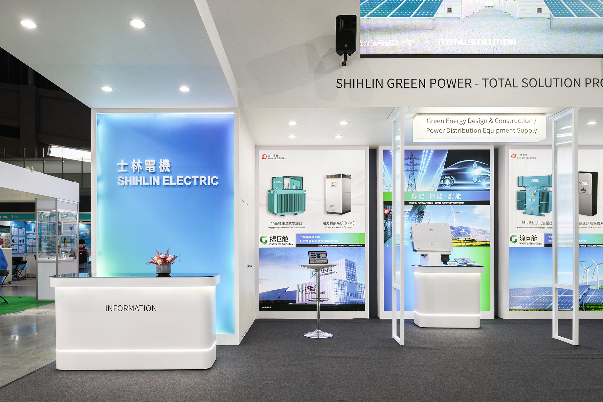 士林電機參與《2023 台南國際綠色產業展》,由潮穎設計團隊擔綱全場展覽設計,透過高結構、大視覺、流暢動線及燈光配置,